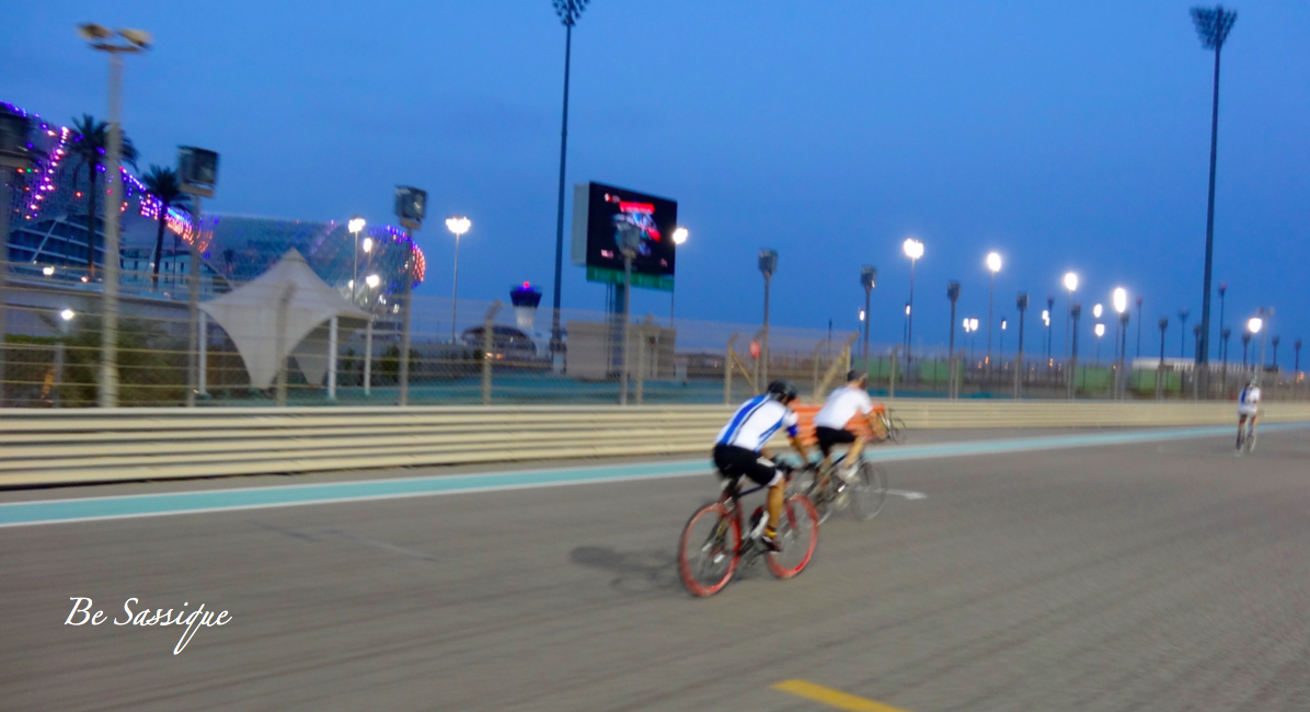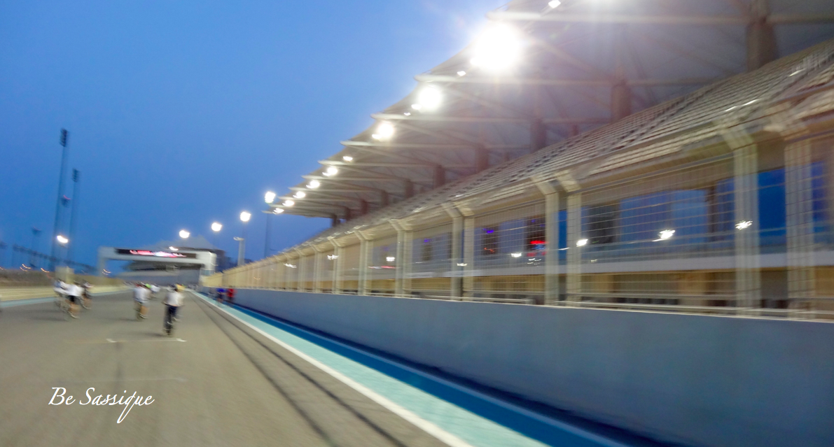 Des weiteren kann man nach einem Mall bzw. Ferrari World Besuch noch zur Formel 1 Rennstrecke (Yas Marina Circuit) fahren. Aber nicht nur hinfahren, nein man kann auch selber drüber fahren oder gehen bzw. joggen, zumindest Dienstag Abends. Man kann sich nämlich Fahrräder ausleihen und einmal die gesamte ca. 5,5 km lange Strecke abfahren. Das ist aber wirklich erst Abends zu empfehlen, weil selbst zu dieser Zeit ist es noch ziemlich heiß.