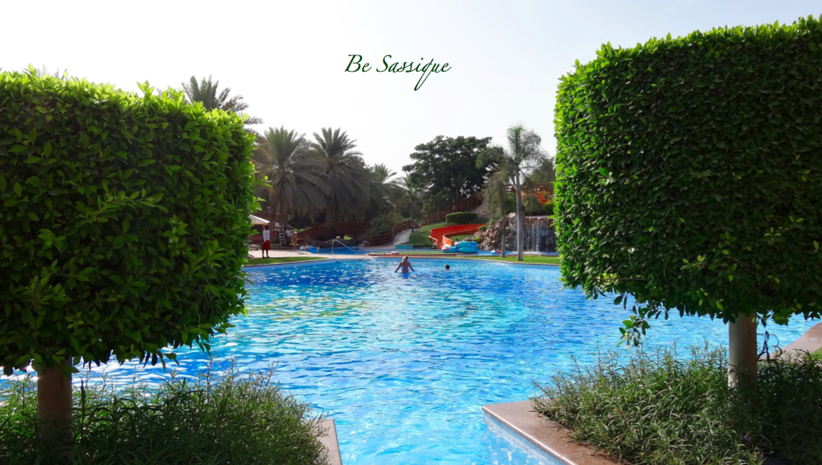 Auf dem Weg vom einem Pool zum anderen Pool kann man noch die schön angelegten Außenanlagen mit Wasserspielen sehen 🙂