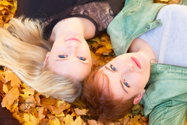 I love the one of you two laying in the leaves, your blue eyes "pop" with the gold background cover.